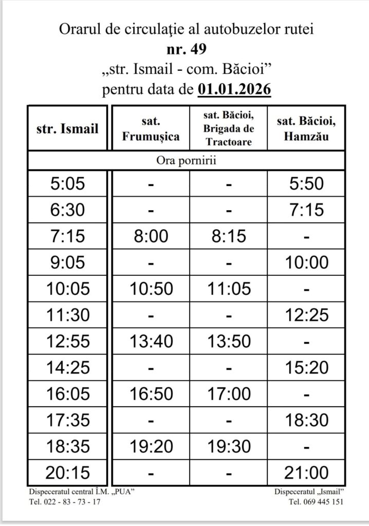 🔹 Ruta nr. 49 – „str. Ismail – com. Băcioi”