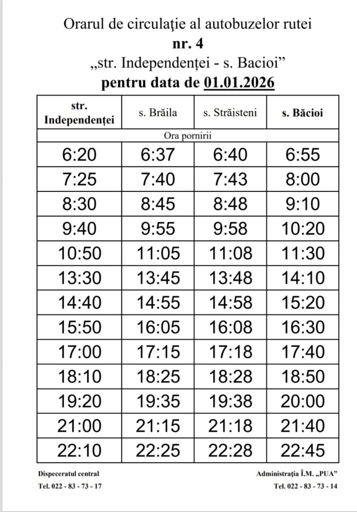 🔹 Ruta nr. 4 – „str. Independenței – s. Băcioi”